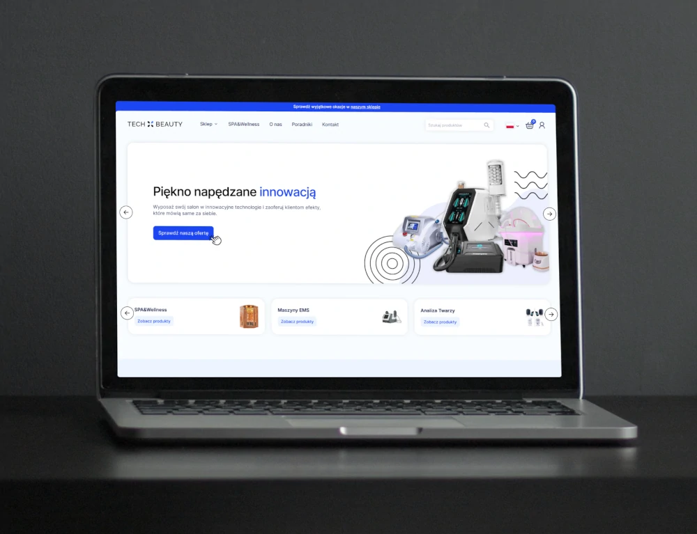 Dla klienta z branży sprzedaży maszyn kosmetycznych przygotowałem nowoczesną stronę internetową opartą na WordPress. Projekt miał na celu stworzenie eleganckiej i profesjonalnej przestrzeni online, która w atrakcyjny sposób prezentuje ofertę urządzeń dla salonów kosmetycznych i gabinetów beauty. Strona została zaprojektowana w minimalistycznym stylu premium, z naciskiem na estetykę, intuicyjną nawigację i pełną responsywność. Dzięki przejrzystemu układowi treści klienci mogą szybko znaleźć interesujące produkty, a właściciel sklepu – w prosty sposób zarządzać ofertą.